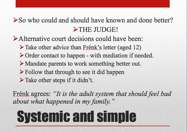 The key lesson to learn from Rewind is that the Judge could have quite simply made all the difference. The court should not have so easily accepted Frénk and Désirée’s immature advice in their letter asking for custody with their father.